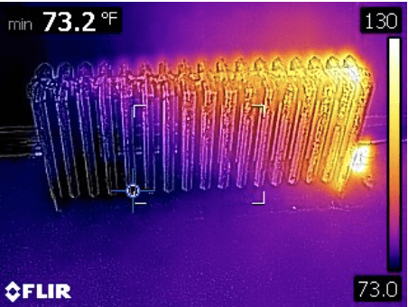 Los escaneos infrarrojos revelan una distribución desigual del calor en los radiadores, ayudando a identificar problemas de circulación, bolsas de aire o componentes defectuosos.